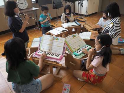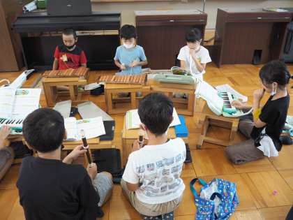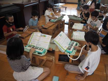 リコーダーパート、鍵盤ハーモニカパート、木琴パートに分かれて、楽しい曲の雰囲気を表現しながら合奏しました。