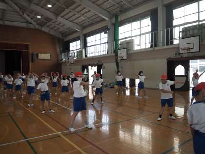 運動会のダンス練習をしています。