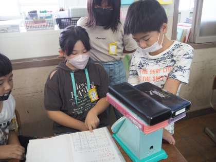 どんなはかりを使うといいか考えながら量っていました。