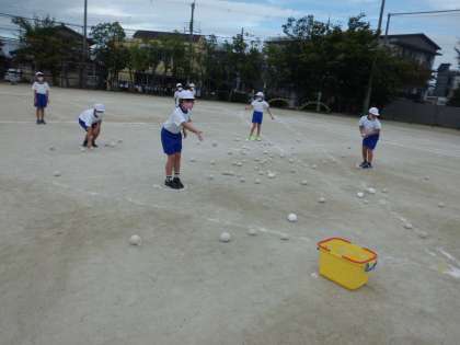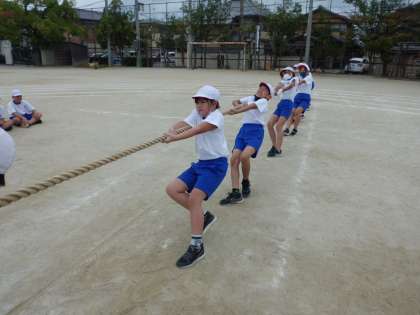 5日(水)、「Let's go!つな引き」と「キャッチでGo!Let's go!」の練習をしました。どの子も真剣な表情で挑んでいます。