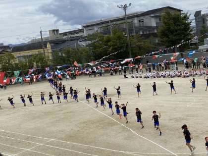 4年生の「魅せろ!よっちょれ桜!」の様子です。鳴子の音を合わせ、息ぴったりの演技です。かっこいい4年生です。