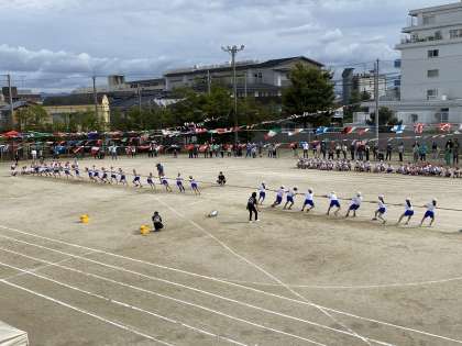 次は6年生の「Let's 考動!つな引き」です。1試合1試合、手に汗にぎる戦いが続きます。さてどちらが勝つのでしょうか!?