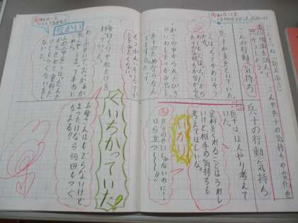 国語科「ごんぎつね」の学習を進めています。結末が衝撃的ですが、そのような結末になるまでのごんや兵十の気持ちの変化を中心に読み深めています。気持ちを想像するのが上手で、いろいろな意見があり、面白い教材です。ノートにも分かりやすく友達の意見も書いています。