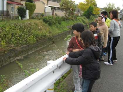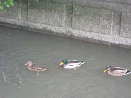 途中、有栖川でかもが泳いでいるのを見つけ大喜びでした。