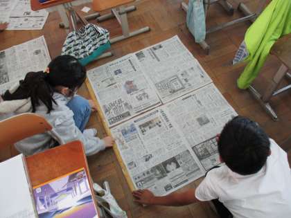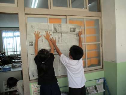 面積について学習をしています。しかし、1平方センチメートルと1平方メートルってどれくらい違うのかはなかなか実感してみないと量感がつかめません。そこで、今日は2人組で協力して1平方メートルを新聞紙で作りました。「思っていたより大きかった!」と驚きの様子でした。いろいろなところのおよその面積も調べてみました。
