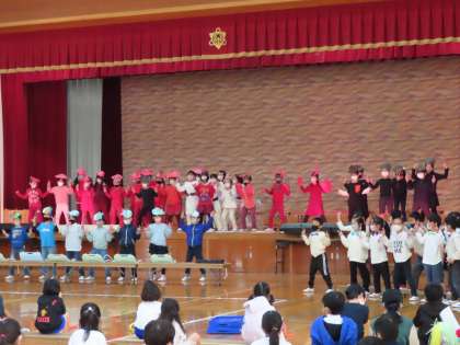 1・2年生は、国語で学習したお話の発表でした。おうちで何度も音読しているので、自信をもって楽しんでせりふを言っていました。