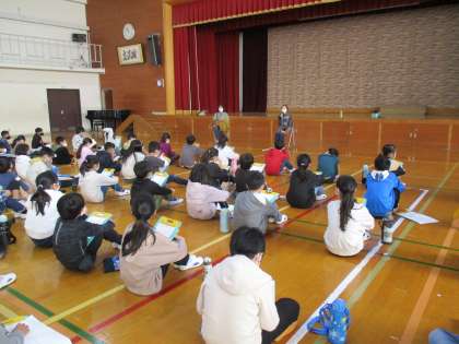 今日は、25日ということで人権の学習をするハッピーデーです。今回は、ゲストティーチャーの方に来ていただき、視覚障害について学習しました。視覚障害についてお話を聞く中で今まで知らなかったことを知ったり、視覚障害の方に出会った時の支援方法について学べたり、実際に手引きの体験をしたりしてたくさんの学びがあったようです。