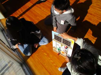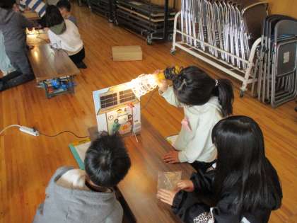 今週から総合の学習では「環境エコプロジェクト」の学習に入りました。京セラの方に来ていただき、はじめのきっかけのお話をしていただきました。地球温暖化問題について知り、オゾン層を破壊しないために二酸化炭素を出さない発電があることを教えてもらいました。その中の「太陽光発電」について実際に実験をして、発電のシステムを理解することができました。