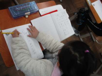 もうすぐ冬休みなので、久しぶりに会える親戚の方やおじいちゃんおばあちゃん、幼稚園や保育園の先生、子どもたちの渡したい相手に合わせて、一生懸命、丁寧に書きました。