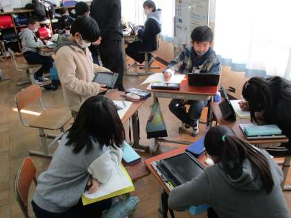 総合の学習を通して知った環境を守るための取組(今私たちができること)を、全校に伝えるための準備をしています。今日は具体的にどのような方法で伝えるのかを話し合いました。1人1つずつ提案し、その中から投票で決めました。