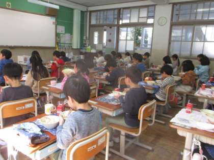最後には、にこにこになる目標を考えて、給食を食べました。とても丁寧に食べている1年生。大変立派でした。2年生でも、みんなで楽しい給食の時間になるようにしていきたいですね。
