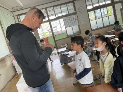 1年生の頃に習った自分の名前の紹介の仕方を思い出しながら、アンディ先生に自己紹介しました。