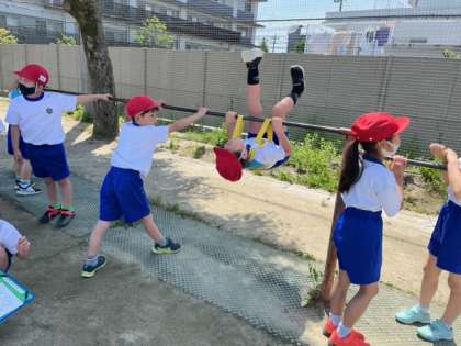体育の学習では、「てつぼうあそび」の学習を進めています。いろんな動きにチャレンジして楽しんで活動している様子です。いろんな技にチャレンジをしています。休み時間にも取り組んでいる子たちもいるようです。てつぼうのつかみ方に慣れて、楽しく安全に学習を進めていってほしいと思います。
