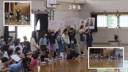 11日(木)、1年生を迎える会がありました。今年度は、4年ぶりに全校児童が体育館に集まりました。