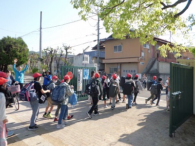 おうちの人にも元気よく「行ってきます!」とあいさつをして学校を出発しました。