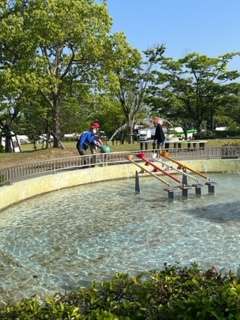屋外には、水を使って楽しむ施設もありました。気温も高いのでとても気持ちがよかったです。