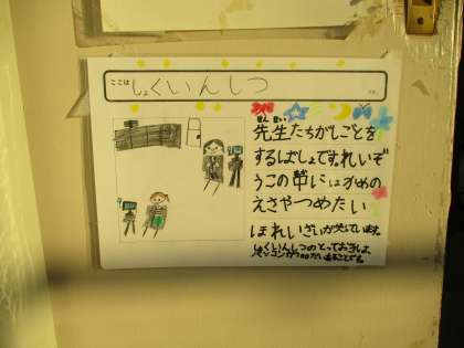 1年生に学校を案内する準備をしています。今日は、各教室の担当の先生方にインタビューをしたことをカードにまとめました。