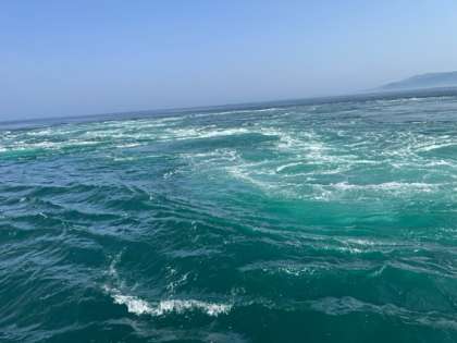 渦潮が見えました!渦の迫力にびっくりしています。初めて見る人もいて歓声が沸き上がります。