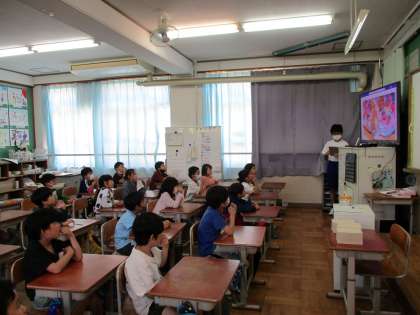 今日は嵯峨中学のお兄さんに絵本の読み聞かせをしていただきました。面白いお話で興味津々です。普段もたくさん話してもらったり、遊んでもらっています。