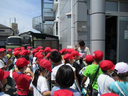 今日は北側ルートです。お店や施設の方にもお話ししていただいたり、中を見せていただいたりして、子どもたちはとっても興味津々です。