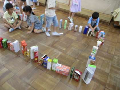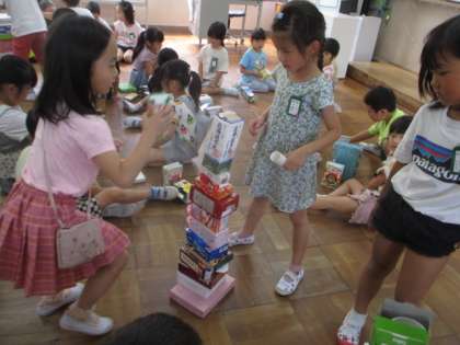 同じ形の種類の箱を並べたり、積んだりと子どもたちの豊かな発想に驚かされました。