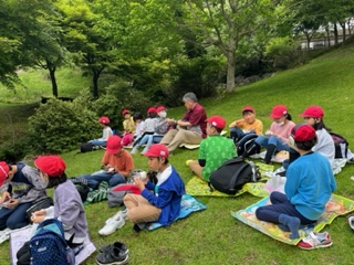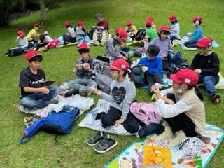 お昼からの活動に備えてしっかりご飯を食べます。お弁当の用意、ありがとうございました。