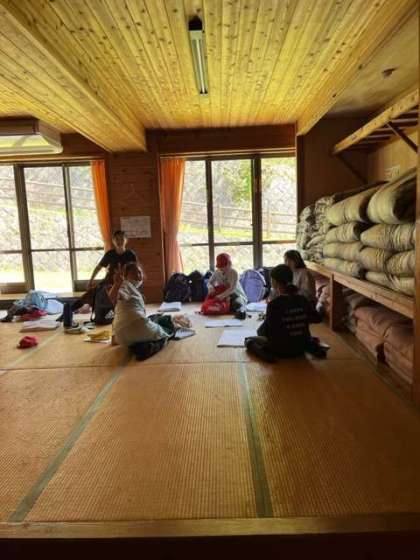 花背山の家の館内に入りました。荷物整理をして次の活動の準備をします。