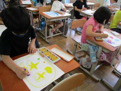 図画工作の学習では「ふしぎなたまご」を作りました。今までに見たことないふしぎなたまご…。とってもカラフルなたまごが出来上がりました。今日できたたまごはみんなで温めることにします…!