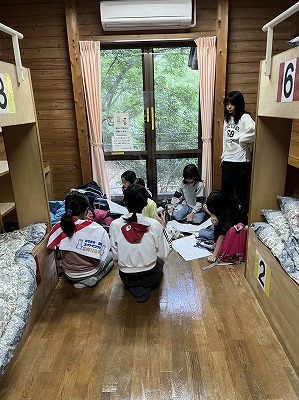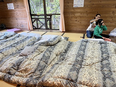 花背山の家に朝がやってきました。とてもよいお天気です。朝の集いまで時間があるので荷物整理をしたり、ゆっくり過ごしたりしています。