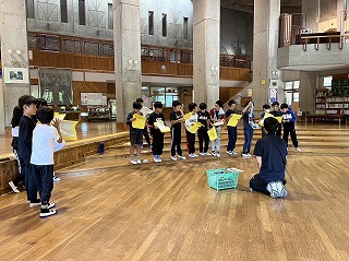 今日の夜のキャンプファイヤーに向けて練習をしています。盛り上がるといいですね。