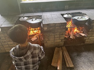 カレーが完成までもう少し。おいしそうなにおいがします。早く食べたいな。