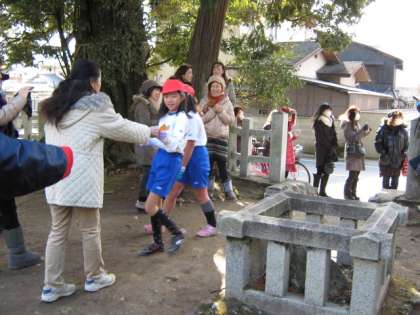 時折、雪が舞う寒風の中でしたが、子どもたちは元気に田園風景の中を走りました。