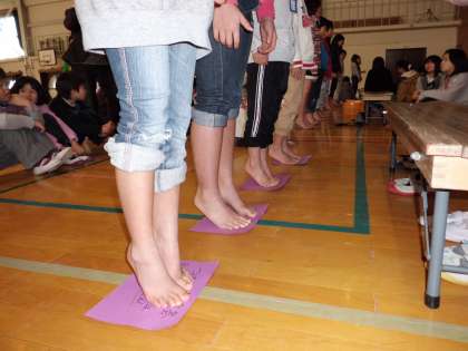 どの選手もピンと踵を上げしっかり立つことができ、なかなか勝負がつきませんでした。その中でも、優勝した4年生のクラスは代表選手全員が一度も踵をつかず5分間をやり終える素晴らしい結果を残しました。