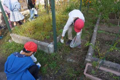 4年生は、北門周辺の草抜きやごみ拾いをしました。