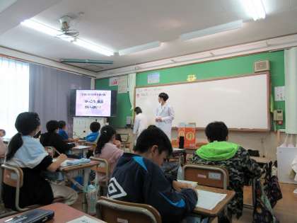 26日(木)、「輝かそう!未来の自分」の学習で、月桂冠の方にゲストティーチャーとして来ていただきました。月桂冠では、どんな仕事をしているのかクイズをしながら学んでいきました。子どもたちも楽しみながらお話を聞いていました。また、お話しされていることを一生懸命聞き、メモをとる姿も素晴らしかったです。