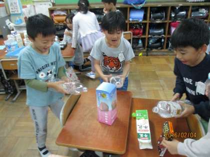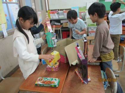 生活科の学習では、家から持ってきた空き箱や空き容器などを使って、遊びを考えました。グループでアイデアを出し合い、楽しい遊びを考えることができました。もっと楽しい遊びを考えられるかな…。これから試したり、工夫したりして遊びを深めていきます。