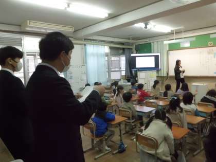 11月22日(水)に京都教育大学数学領域専攻の学生さんが広沢小学校を見に来られました。先生を目指している学生さんが実際の学校現場に来て、授業を参観し、学ぶという取組です。