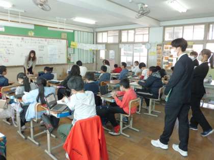 真剣なまなざしで授業を観察し、将来に向けて学びを深めていました。各クラスの子どもたちも一生懸命学習に取り組んでいました。