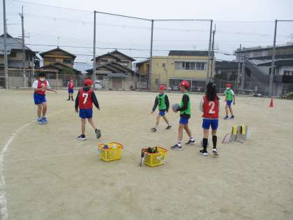 サッカーの学習も後半戦にさしかかってきました。今日は対抗戦(同じチームと2回戦)を行いました。チームで相手に合わせた作戦を立てて挑みます。守りを固めるためにゴール前に1人立つようにしたり、攻めるときにできるだけゴール近くにけりこむようにしたり、試行錯誤していました。