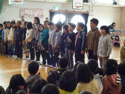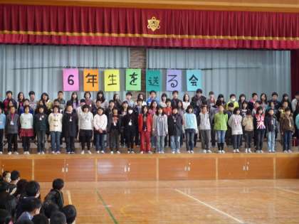 各学年、もうすぐ卒業する6年生に向けて、激励や感謝の気持ちを込めて、歌や楽器の演奏を送りました。