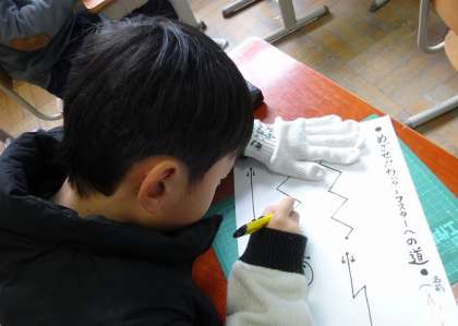 2年生は、図画工作科でカッターナイフを使った工作に取り組んでいます。