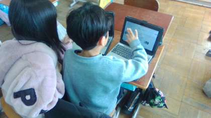 明日の嵯峨学園交流会に向けて、パワーポイントの最終確認や発表練習をしています。GIGA端末で自分たちの発表の様子を動画に撮り、「もう少し声を大きくしよう」「写真を見せる時間は長くしよう」などお互いにチェックするなど工夫する姿が見られました。