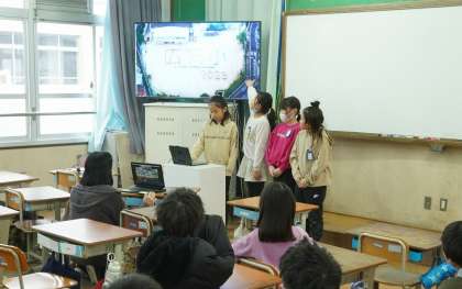 国語、総合で進めてきた学校紹介を嵐山小学校・嵯峨小学校のみなさんとオンラインで交流しました。他の学校には、バスケットボールのコートや亀や鯉の池があること、創立150周年の小学校があることなど、たくさんの新しい発見がありました。自分たちの発表では、つま先立ちや総合で学習した有栖川、50周年記念などについてパワーポイントを使いながら頑張って発表しました。声の大きさだけでなく、身振り手振りも工夫した発表で、上手に発表することができました。