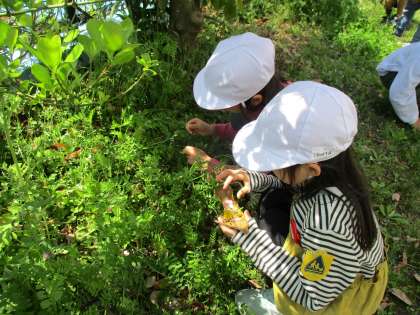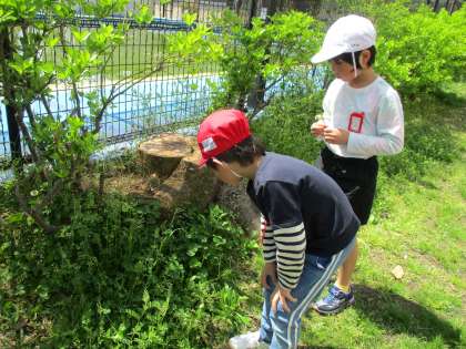 1年生が入学して、4日が経ちました。少しずつ学校の生活にも慣れ、この日は、学校の芝生ランドを探検しました。春見つけをしましたが、いろいろな生き物や植物を見つけ、楽しんでいる様子です。学習も始まっていきますが、1年生パワーで頑張ってほしいなと思います。
