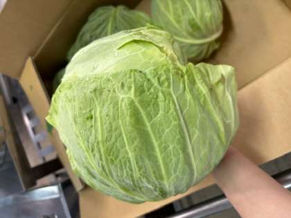 春が旬の春キャベツは、やわらかくて甘みがあるのが特徴です。今日も立派な春キャベツが届きました。