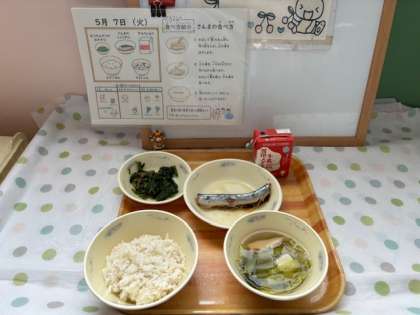 連休明け、7日の給食は「さんまのしょうが煮」でした。
