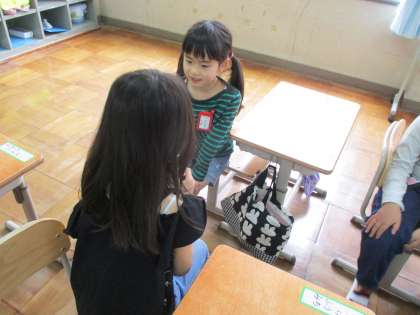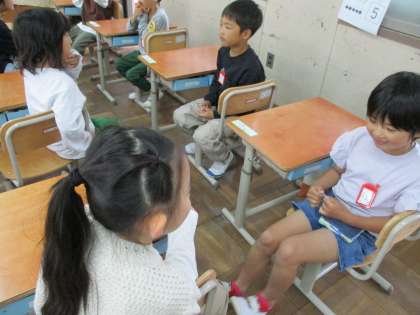 国語の学習で「よくきいてはなそう」の勉強をしました。この日は、友だちから聞いた答えに返事をする練習をしました。「いいね!」や「わたしも一緒にやりたいな〜!」「どこであそんでいるの?」など、友だちの話を聞いて返事を返しました。