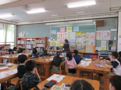 学校図書館司書の先生に読み聞かせをしていただきました。
