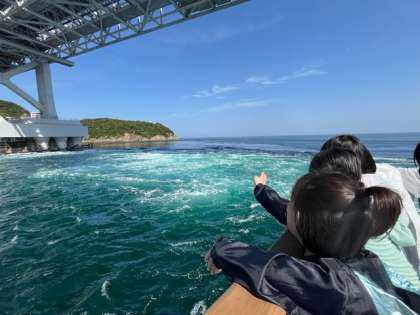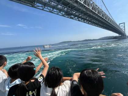 子どもたちは目の前で見るうずしおの迫力に歓声を上げていました。