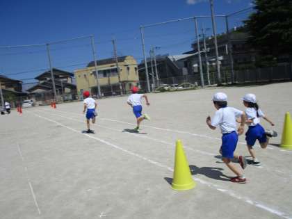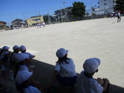 29日(水)体力テスト最後の種目50m走をしました。1年生は6年生と一緒に走りました。6年生の速い走り方の良い見本を真似しながら、一生懸命に走りました。走り終わった後、「速かったね!」「つぎも頑張ろう!」などたくさん声をかけてもらいました。